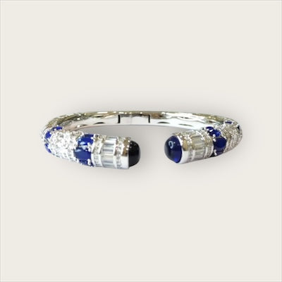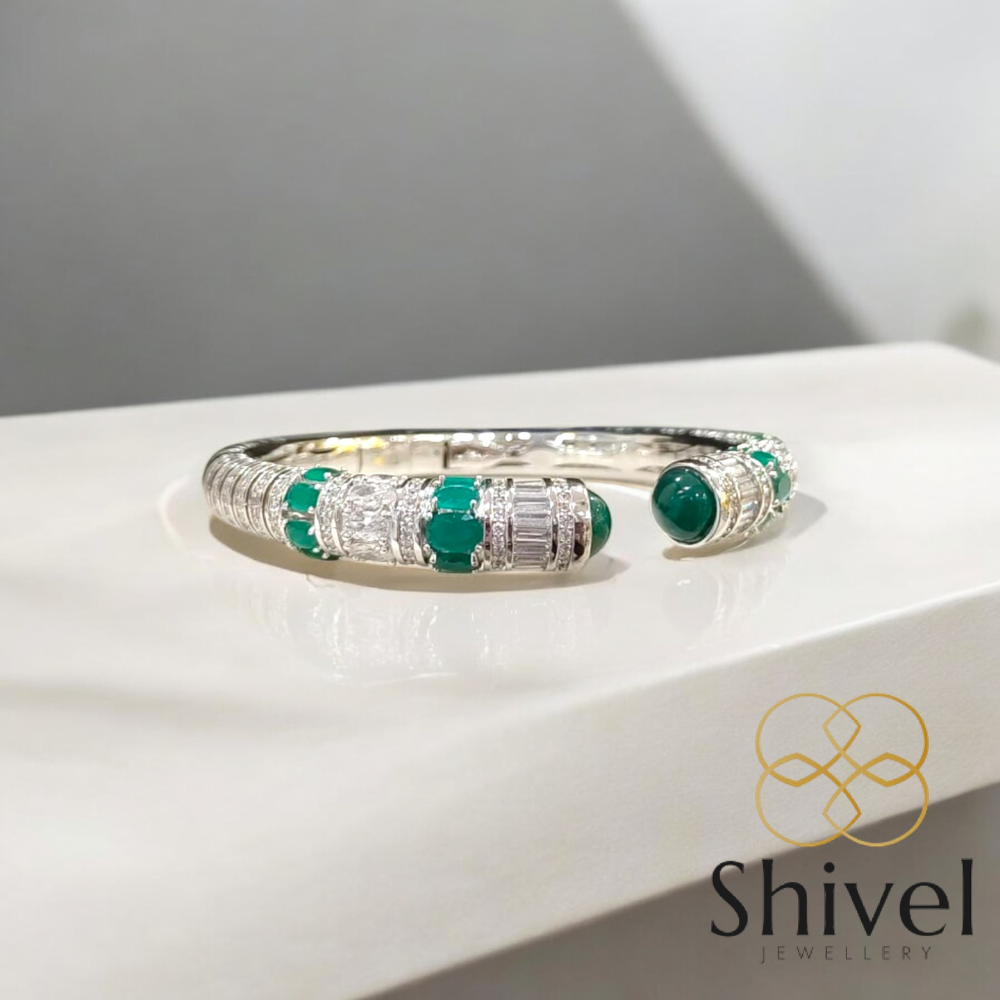 Green gemstone and diamond banlge